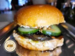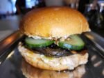 - For vegetarian lovers, we have a portobello mushroom burger, slathered in chipotle mayo, pickled cucumber and fresh lettuce