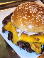 - Get ready to rock your tastebuds with this double smash burger featuring juicy beef patties, crispy onion and zingy chipotle mayo served on a toasted brioche bun